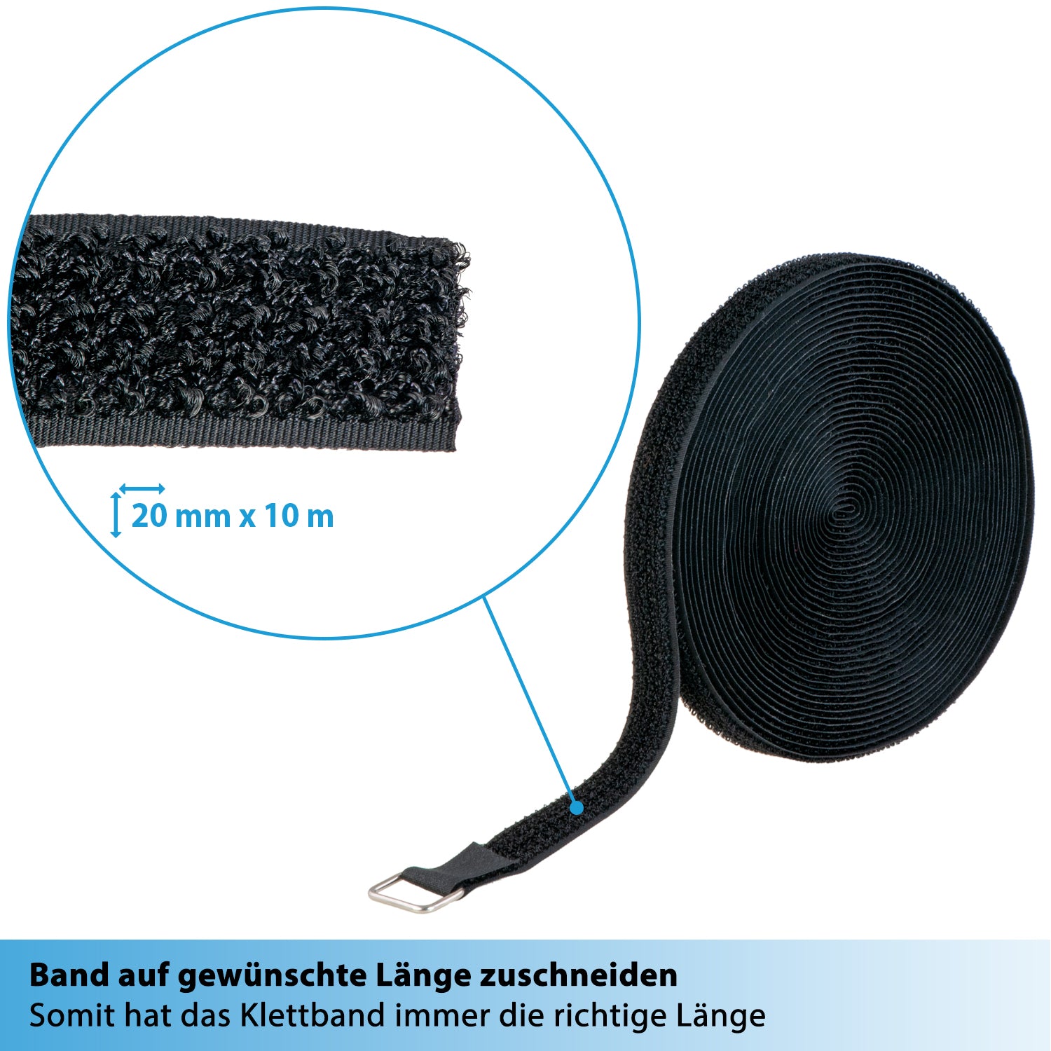 Die 10 m Rolle lässt sich flexibel auf jede gewünschte Länge zuschneiden und ist dank Klettverschluss beliebig oft wiederverwendbar – nachhaltig und praktisch zugleich. -