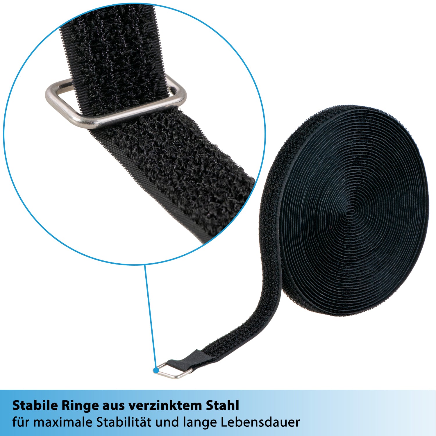 Lieferumfang: | 1 x 10 m Klettband + 25 x Metallringe |
